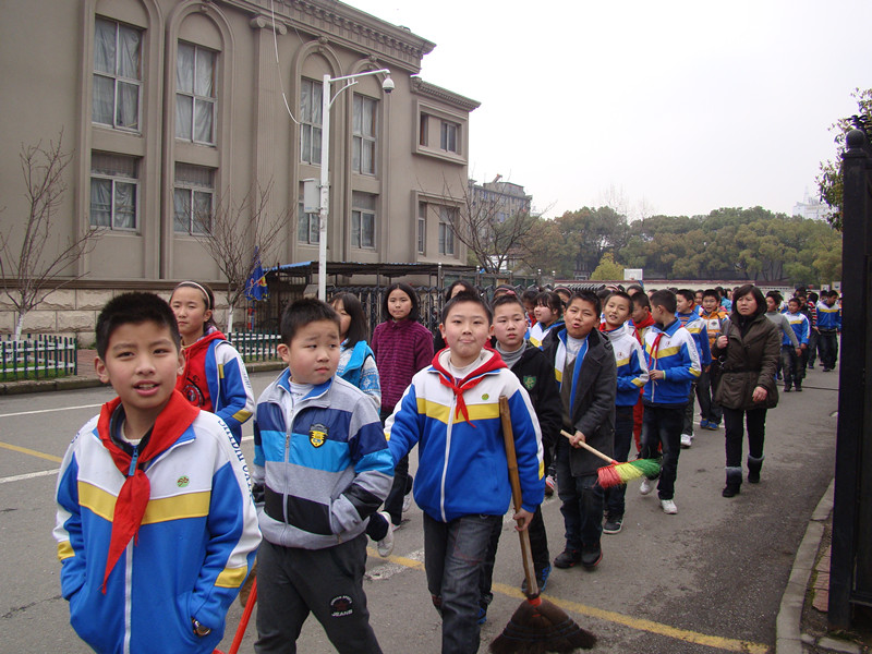 的同学们走出校园,开始了他们的校外“学雷锋”活动。