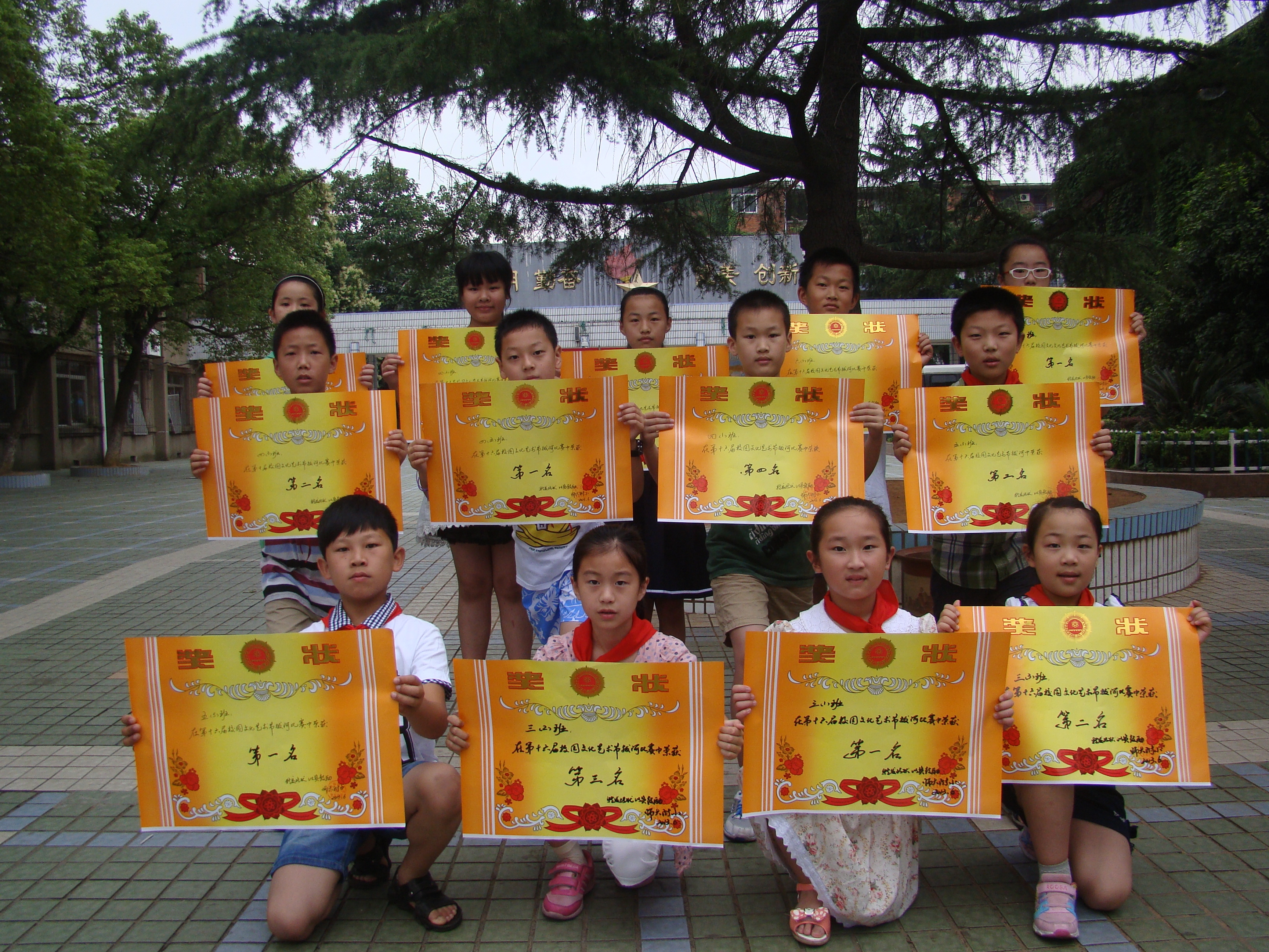 校园文化艺术节系列活动的评比结果。五月份,同学们积极的参与了跳绳、拔河、趣味运动会和书法绘画比赛,在这其中涌现了不少优秀的班集体和同学。本次比赛的总裁判长徐清华老师依次宣布了比赛成绩(具体名单见附件2、3、4、5),李校长,周书记和张老师为班级代表颁发了奖状。