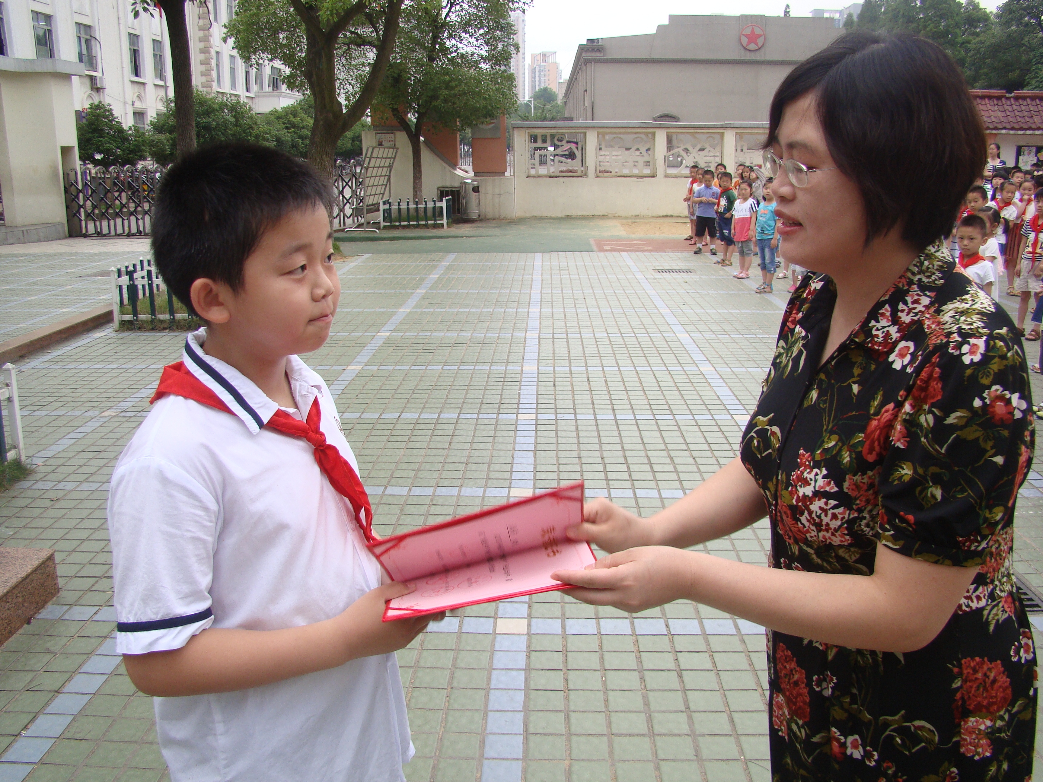 五(1)班江民泽同学,在五月份南昌市“十佳美德少年”的评比活动中,江民泽同学脱颖而出,入闱前一百名并荣获南昌市“美德少年”荣誉称号。李校长为他颁发了荣誉证书并鼓励全体同学像江民泽同学学习,在日常学习生活中讲文明讲道德,争做美德少年。