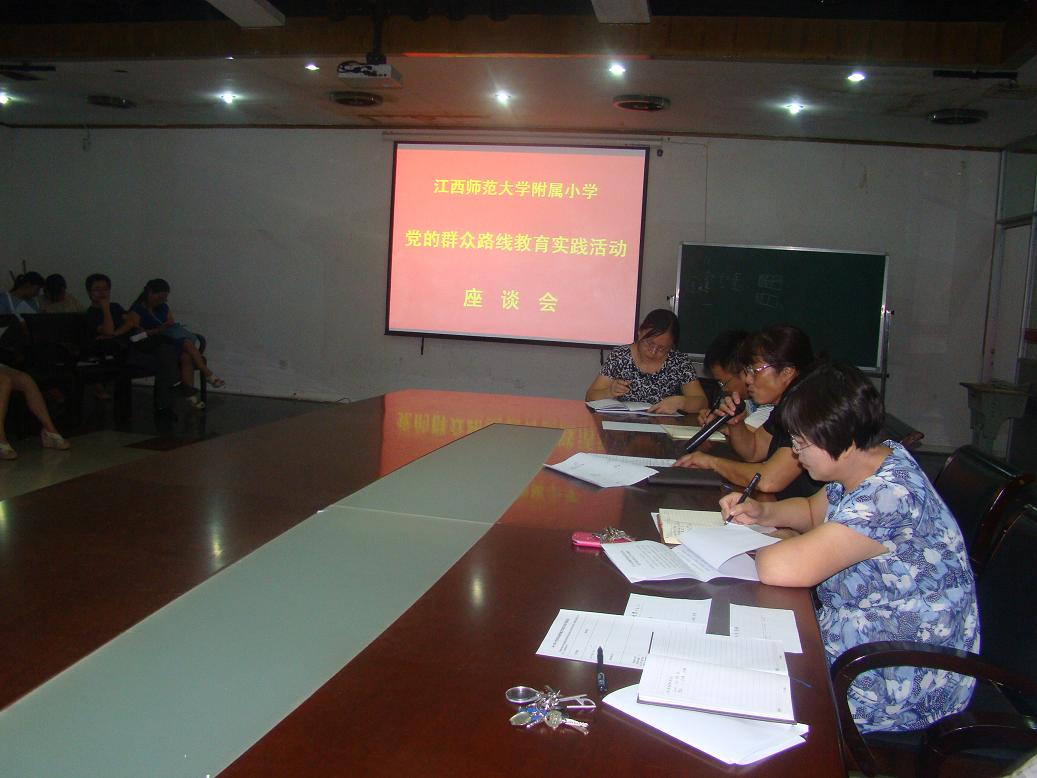 党的群众路线教育实践活动学习教育、座谈会于9月10日在会议室举行,大会由李汶校长主持,周剑萍书记作主题发言。