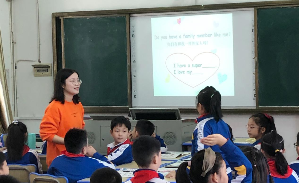 在读故事前,杨莹老师从自己的家庭出发,巧妙的延伸至学生们的家庭,并充分走进了学生们的生活,从而让学生勇于谈论自己的家庭成员及相应职业,使得课堂充满了浓浓的生活气息,拉近学生与文本,与老师的距离。