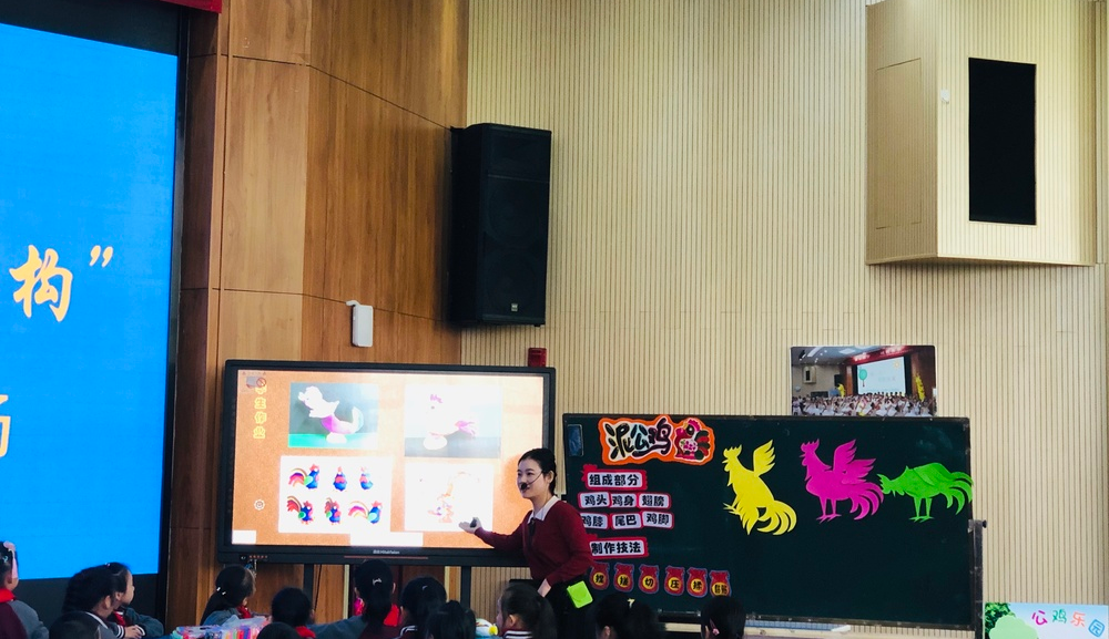 第二个环节:课堂展示环节。本次活动授课教师分别是南昌师范学院麻豆社 的邬芳婷老师与南昌大学麻豆社 的黄泽群老师。本节课是赣美版二年级上册第18课《泥公鸡》,两位教师的课堂教学各有千秋。泥土的可塑性吸引着学生玩在其中,乐在其中,学在其中。授课教师在本课的教学中传授了陶泥和泥塑的一些基本技法,让低年级孩子在玩泥过程中体验泥塑的特性,玩出创意,玩出精彩,两位教师语言充满童趣吸引学生,与学生互动亲切自然,每个环节循序渐进,让学生学会用对比观察的方法进行学习,课堂生动有趣,培养了学生的动手能力和创新能力。