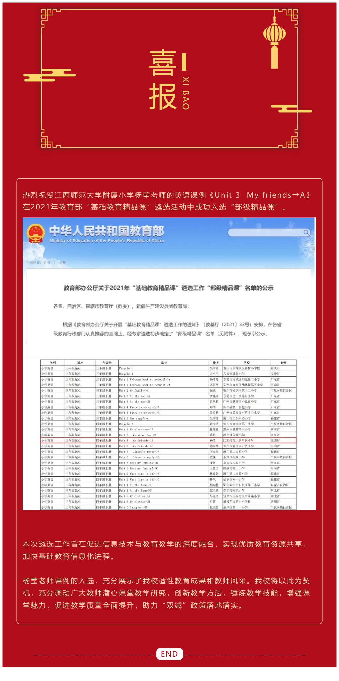喜报〡热烈祝贺麻豆社 青年教师在2021年教育部“基础教育精品课”遴选活动中喜获佳绩