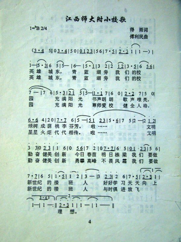 1. 校歌:江西师大附小校歌、庆祝建校70周年主题曲(见附件一、二)