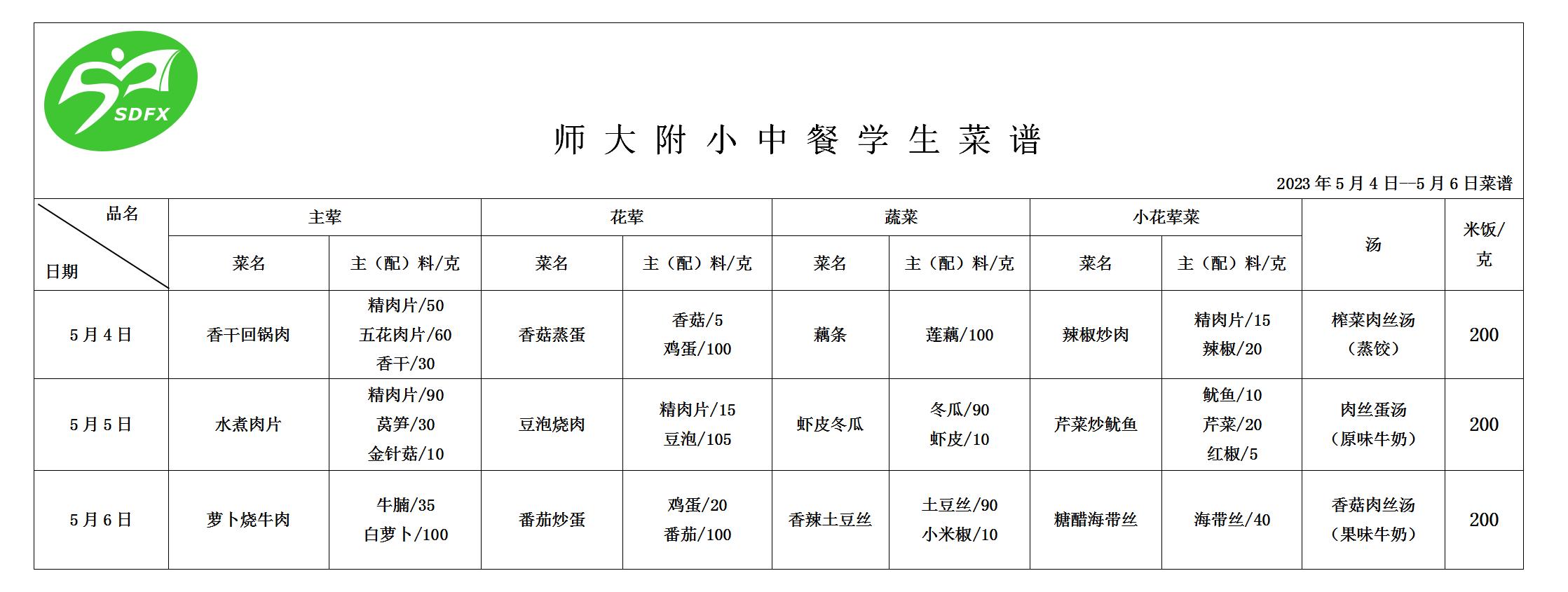 师大附小2023年5月4日-5月6日食谱