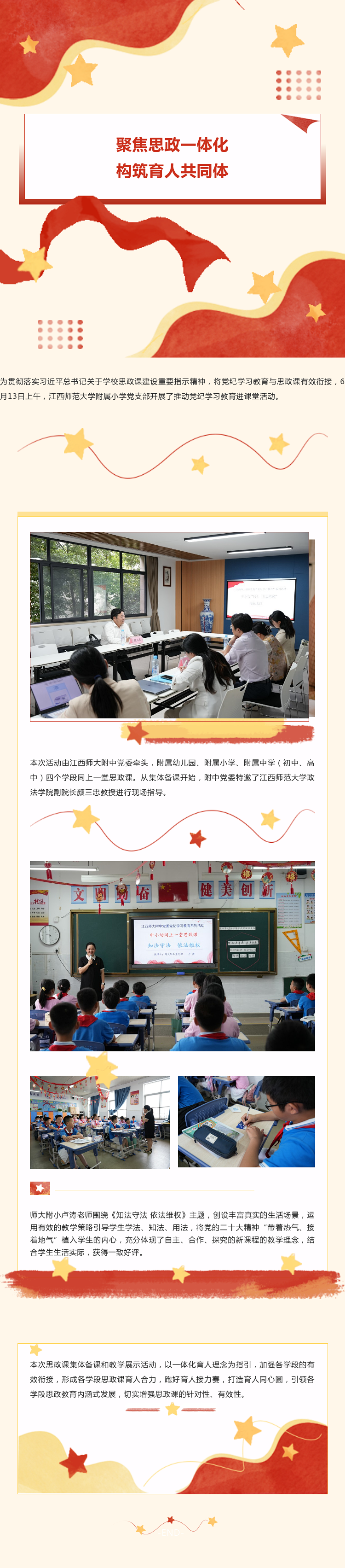 聚焦思政一体化 构筑育人共同体〡江西师大附小党支部推动党纪学习教育进课堂活动侧记