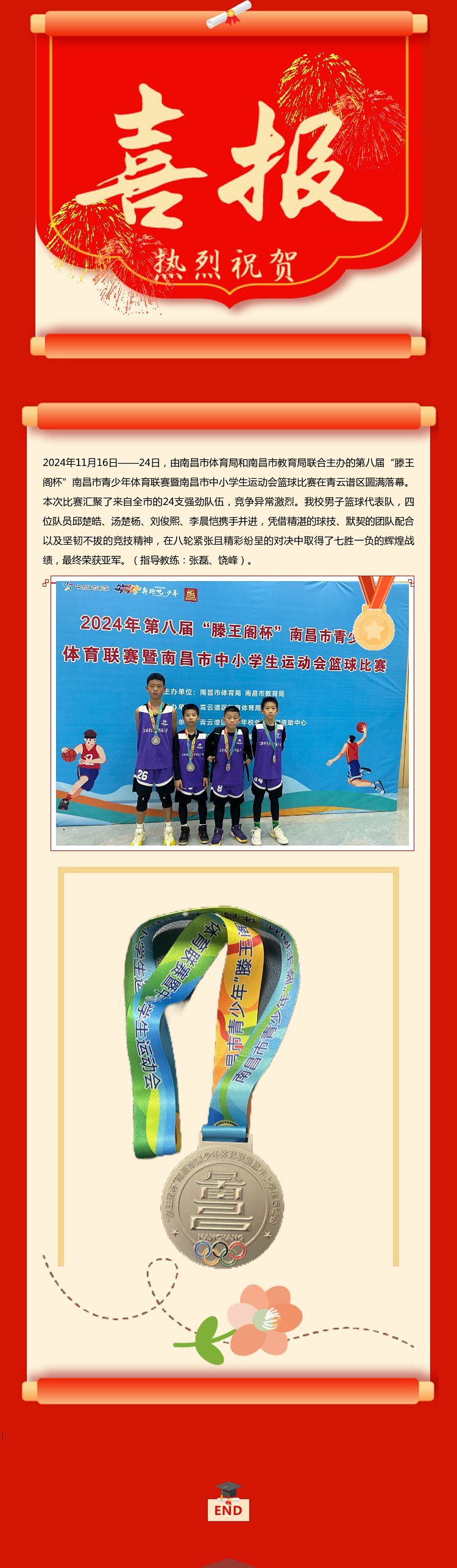 喜报|麻豆社 男子篮球队在第八届“滕王阁杯”南昌市青少年体育联赛暨南昌市中小学生运动会篮球比赛中荣获亚军