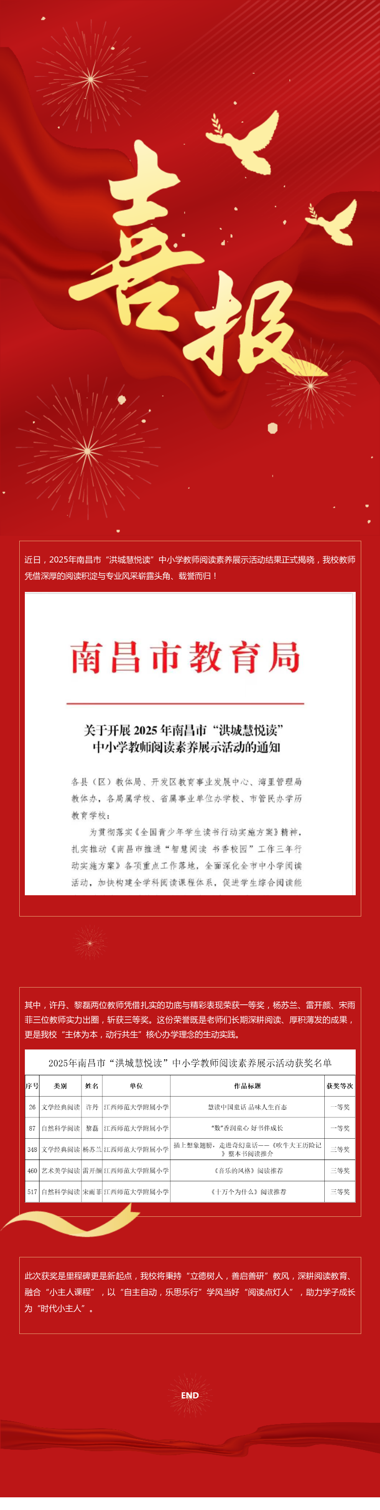 喜报∣麻豆社 教师在南昌市中小学教师阅读素养展示活动中斩获佳绩